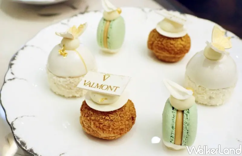 青隅 X VALMONT 「鎏金祕尋」下午茶饗宴,由台北文華東方酒店的頂尖西點廚藝團隊為此次聯名下午茶發揮創意巧思,以令無數名媛傾心的VALMONT肌密更新面膜、肌密防禦活氧泡泡面膜等明星產品為發想。