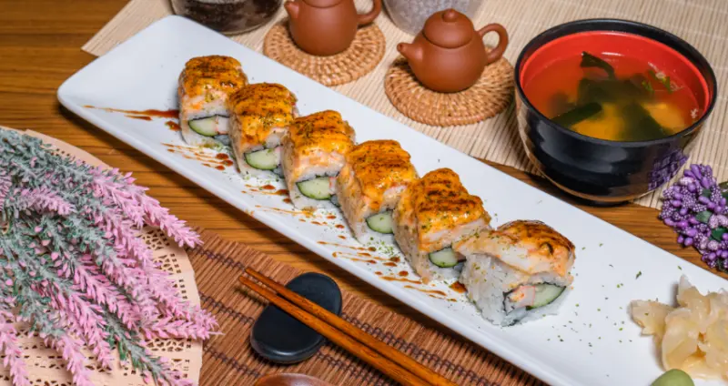 年過30的老闆,為完成父母期待而創立這家夢想之地,耗資百萬開店、將過去曾於澳洲打工之經驗,完美地融入日式料理中,像是獨家發想的「彩虹捲壽司」,巧妙地搭配水梨、燻鮭魚,成就出視、味覺都令人驚豔的料理;而龍捲壽司則是在鮮奶棒、小黃瓜上置入鰻魚,創新口感相當入味。
