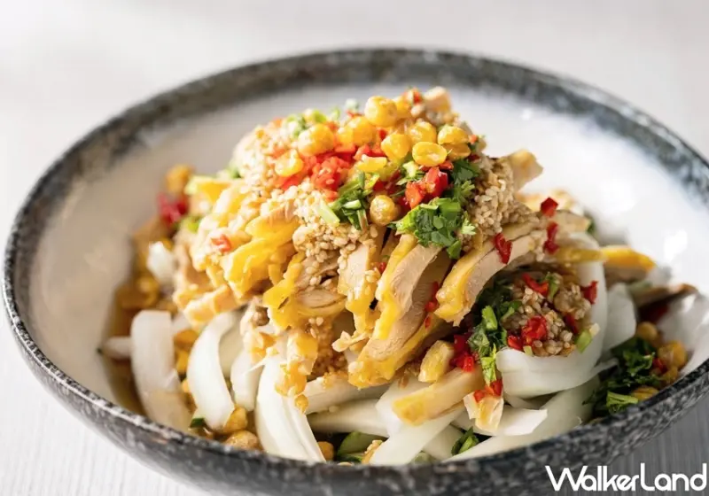 本次國賓川菜廳推出的八導新菜色之中,新菜「酸酸雞」是四川常見的冷盤,主廚將檸檬醬汁淋在肉質緊實彈嫩的文昌雞腿肉、洋蔥絲、小黃瓜絲中,並加入碗豆酥增添豐富口感,整體滋味清爽帶酸香,是一道十分爽口開胃的前菜料理。![]()
