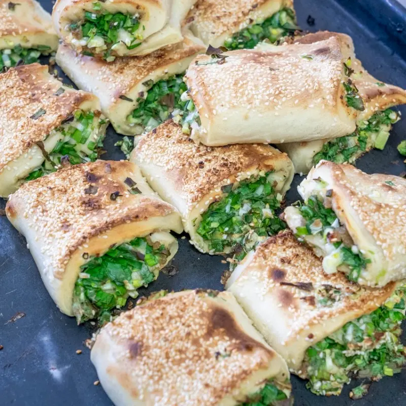早上10點開始每半小時出爐一次,每個前往的人似乎是掌握出爐時機點,蓄勢待發的,出爐的蔥燒餅,麵皮烤得金黃上色,尤其空氣獨有蔥香氣超濃郁,難怪出爐常常被秒殺...<全文介紹>