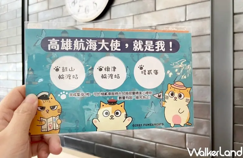 套票組合除了有高雄渡輪來回票券,可自由選擇棧貳庫或中洲瑪頭來回路線之外,還包含一張印有黃阿瑪精美圖案的集章票卡,不僅模樣逗趣吸睛,集滿2個印章還能免費兌換「黃阿瑪」限定貼紙。遊客在拍照打卡之際還能乘著清涼海風飽覽港都美景,讓人心曠神怡。