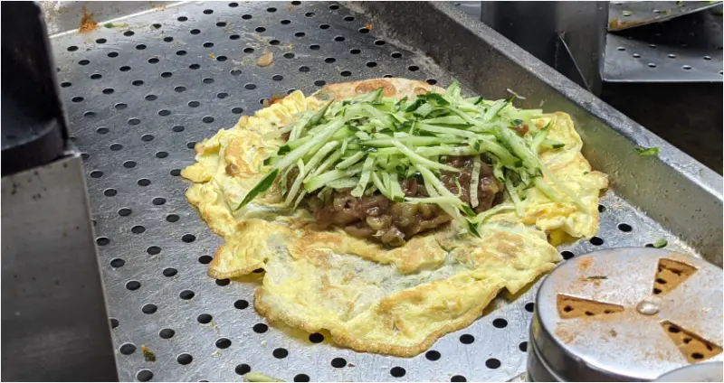 在農會綜合大樓斜對面巷子,經常看到有人排隊的美食,是鎮上的下午茶首選,不少上班族、學生常趁空、下課後過來購買。捲餅都是現點現做,手腳俐落的老闆娘從擀平麵糰、放上煎台、打蛋、加入餡料,不用等待太久便送上顧客手中。經典的牛肉捲餅,一咬下入口傳來撲鼻的九層塔香氣,大量的牛肉餡與小黃瓜絲搭配得宜,吃來爽脆可口,令人驚喜;胡椒與特製醬汁讓捲餅稍偏濕潤,記得趁熱吃才是最佳品味時間,如此美味只要銅板價CP值太高。![]()