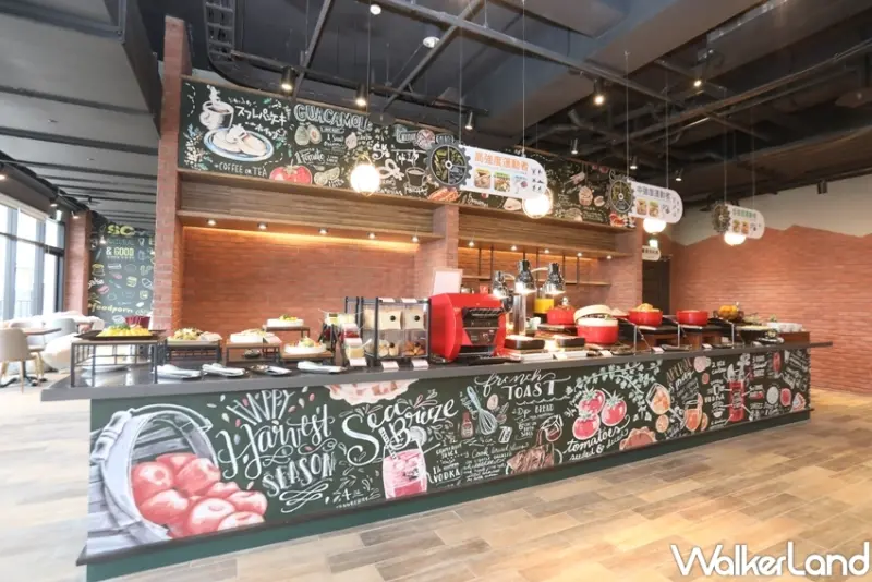 旅店還有一大亮點,則是主打「跟著運動員這樣吃的能量早餐」,依運動強度不同,提供相對應的熱量,進行餐盤的食材比例分配,每位旅客都能打造專屬於自己的能量早餐。旅店內還貼心規劃一系列「風格旅店」的網美打卡區,有大型落地磨豆機、拉霸機檯、復古加油機等價值百萬的打卡裝置。