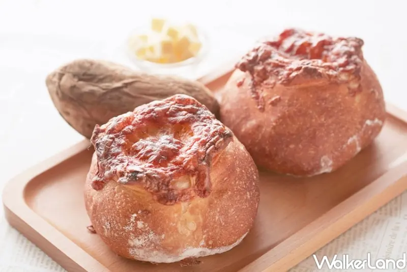 以及,最健康養生的「地瓜起士麵包」,以低溫發酵富有嚼勁的歐式麵包體,包裹碳烤過連皮帶餡打成的地瓜泥,不添加任何額外調味料,可以吃到食材本身濃郁的自然鮮甜味,搭配鹹香乳酪丁中和甜膩口感,從麵包體到餡料皆讓人欲罷不能。