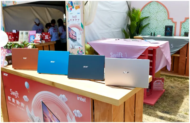 當天超適合帶著時尚流行、超多顏色的Swift Evo系列輕薄筆電,與三五好友一起在這裡拿著超可愛手舉牌一起在此打卡拍照,妝點你的浪漫風格野餐時光屋。現在就讓我們以最靚美有型、充滿夏日活力的裝扮,搭配超輕薄時尚的Swift Evo系列輕薄筆電,感受一下在這充滿美食、音樂與歡樂所打造的夏日時光裡,如何打造專屬自己輕盈玩美的風格野餐時光小屋。