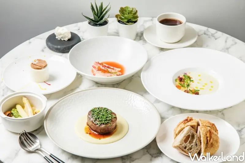 3、平日商業午餐四道料理490元起,打卡分享升級白蘆筍前菜