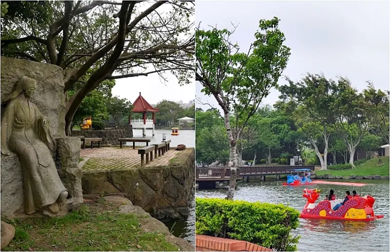 而湖中小島上有一處氣宇非凡的「南天宮」,搭配一旁觀光吊橋的陪襯,展現出景觀遊憩區的大器。還可體驗天鵝造型的電動船、腳踏船,在船上感受湖畔自然生態與絕佳景致。每年端午佳節,更會於此舉辦龍舟大賽,帶來節慶歡樂氣氛。
