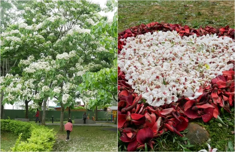 沿途聽著溪水潺潺,如同白雪般飄落的花瓣輕浮於水上方,清新典雅的視覺效果,讓旅人忍不住拿起相機按下快門。