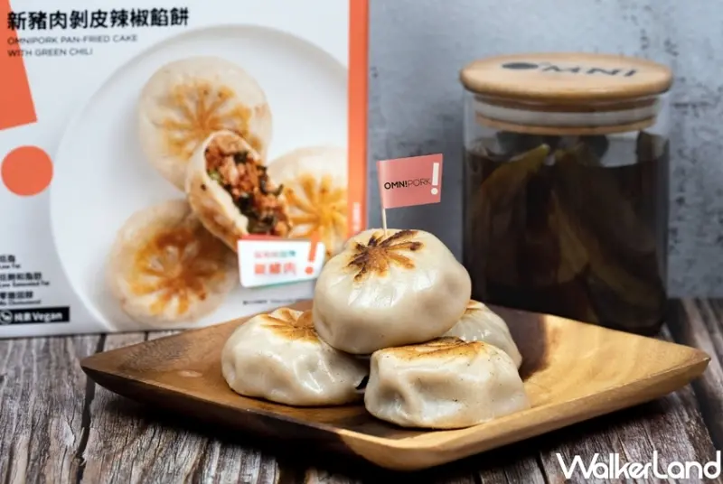 除了全新的「綠色蔬食複合式餐飲店」之外,Green Monday也同步推出全新商品「OmniPork新豬肉剝皮辣椒餡餅」。特別選用台灣在地剝皮辣椒製成酥脆美味的「OmniPork新豬肉剝皮辣椒餡餅」,餡料飽滿,每口都是剝皮辣椒的香甜滋味,用飽滿的台灣味輕鬆攻佔台灣胃。餡餅由純植物製成,內含植物蛋白,低脂、低飽和脂肪、零膽固醇,不含動物來源,吃一口就會有不同以往的口感。