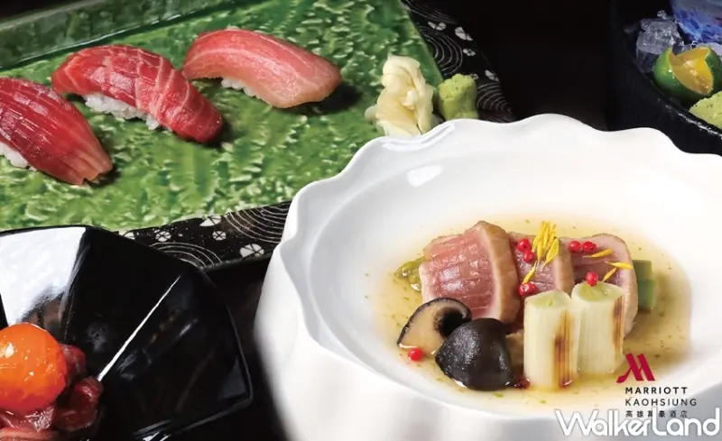 高雄萬豪酒店京樂日式餐廳渡邊主廚為了讓老饕品嚐到料理最原始的鮮美味道,特別選用高雄147冠軍米,把大腹、中腹、赤身以特殊專業刀法處理切片,做成握壽司。並在料理上桌同時,欣賞那油花分佈均勻、色澤粉紅的黑鮪魚,並且每一口都能感受到黑鮪魚那入口即化的口感。