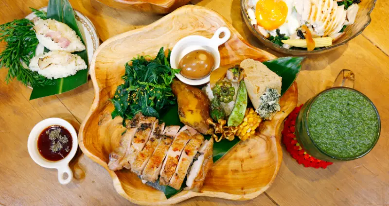 店內具原民風味的料理不少,客人可選擇套餐、炒麵、飯糰或沙拉等方式搭配享用。像是蝸牛料理如部落蝸牛炒麵、炒蝸牛飯糰等,就呈現阿美族人的真實喜好,口感具彈性,類似螺肉的蝸牛,接受度也越來越高。主食方面包括以月桃香料醃製的月桃好胸雞,以刺蔥等醃製的跑得快雞腿,或遵循各家祖傳秘方製作的鹹豬肉等,其他如阿美族糯米飯、刺蔥茶葉蛋,以及必點的飲料野菜昔、糯米釀等調酒,同樣頗受歡迎。另外,店家大量使用自己栽種的當令野菜,組合出都市絕對少見的各式原民料理。