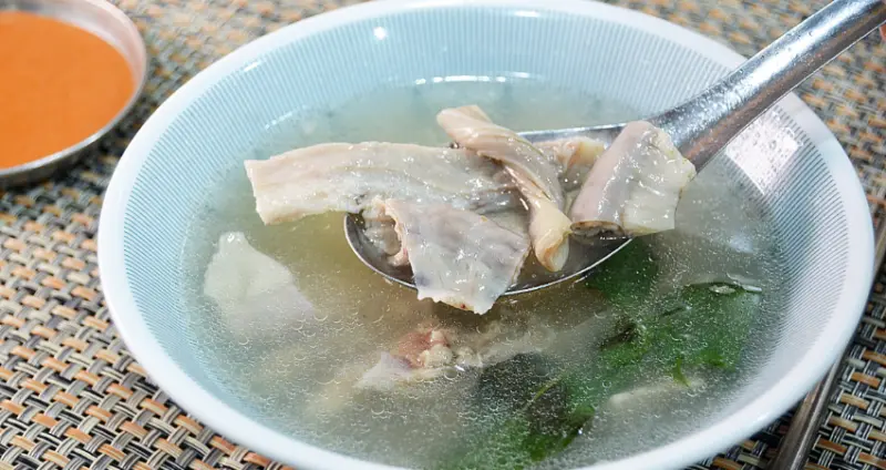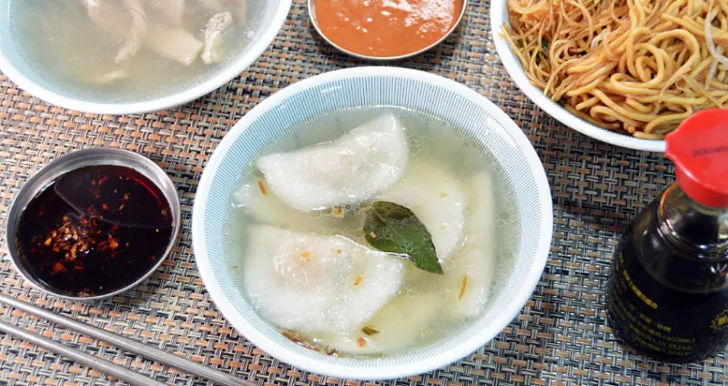 胡鴻煒說,早期農民一早下田前會先吃碗有飽足感的水晶餃,一上午的工作才有力氣,慢慢形成在地人的早餐;他說,水晶餃做工繁複至今仍需要搭配手工製作,首先須用樹薯粉拌熱開水,揉成麵糰後再切小塊,以手工包上新鮮豬後腿肉、油蔥和芹菜等配料,餃皮滑溜但嚼勁十足,撒點油蔥酥和九層塔增添香氣,而搭配的高湯更是豬大骨、粉腸、豬肚等熬煮而成;此外,店裡還有米粉麵、粉肚湯、鹹菜豬血等苗栗地方特色小吃,都是一碗雙享受的客家美食。