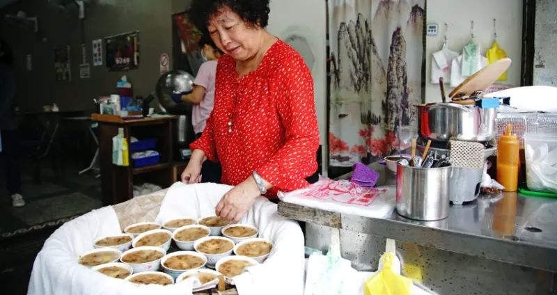 蒸籠裡排滿一碗碗的碗粿,只見老闆娘從容不迫的淋上醬汁、端給客人。其實在這之前,這一家人凌晨3點就已經上工,忙得不可開交了。被視為隱藏版哈瑪星小吃的碗粿枝,民國40年創立至今,世代傳承已經到了第四代。![]()