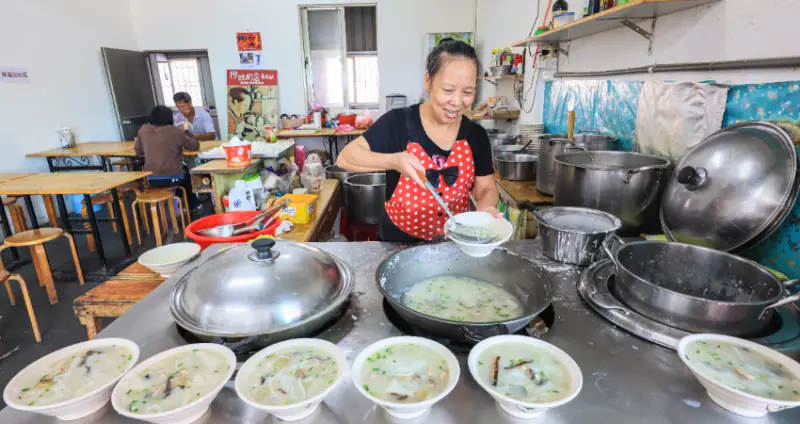 充滿異國風情的馬祖連早餐都與眾不同,在南竿澳口獅子市場裡,「阿妹的店」以一鍋鼎邊糊聞名全馬祖,沒吃過那可別說你到過馬祖。獅子市場1樓是傳統市場,生鮮蔬果雞鴨魚肉應有盡有,特別是馬祖專屬的海產、乾貨更讓人感覺新奇。「阿妹的店」位於市場2樓,餐點選項有鼎邊糊、米粉湯、魚丸湯、燕丸湯4種,其中當然以鼎邊糊最高人氣。店裡一大早就高朋滿座,在地人、觀光客齊聚一堂,品嚐阿妹的手藝。![]()