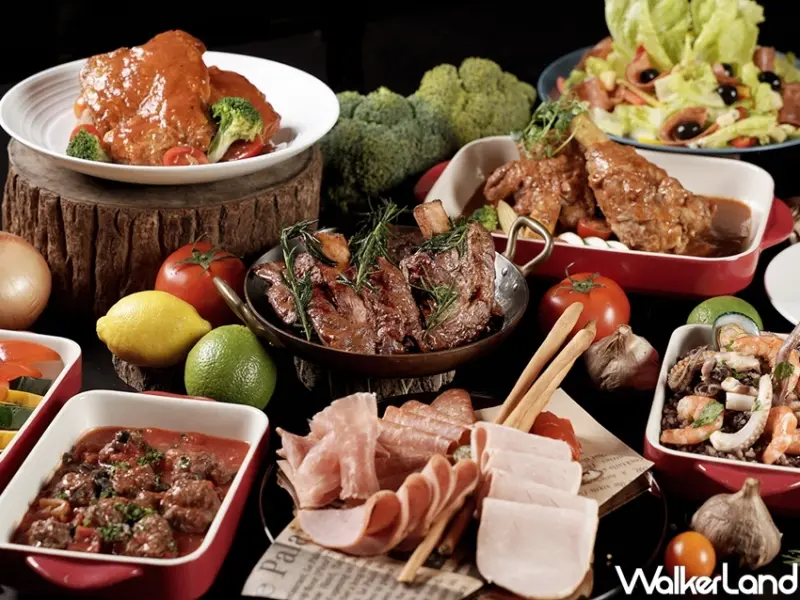 另外,還有雲軒西餐廳四款「味蕾旅行四人套餐」,分別有,美式料理、歐式料理、西班牙料理與東南亞料理四款,最低1699元起,以每套1899元的歐式料理四人套餐為例,內含燻雞凱薩沙拉、香料烤雞腿襯奶油洋菇、義式番茄燉小牛膝、勃根地紅酒牛肋排、蒜味白酒鮮蝦與檸檬、蔬菜南瓜濃湯、清炒櫛瓜、時蔬絲滑薯泥、傳統義大利肉醬麵 、五穀奶油飯、君品芭娜娜蛋糕、堅果胡桃巧克力布朗尼等12道經典料理。
