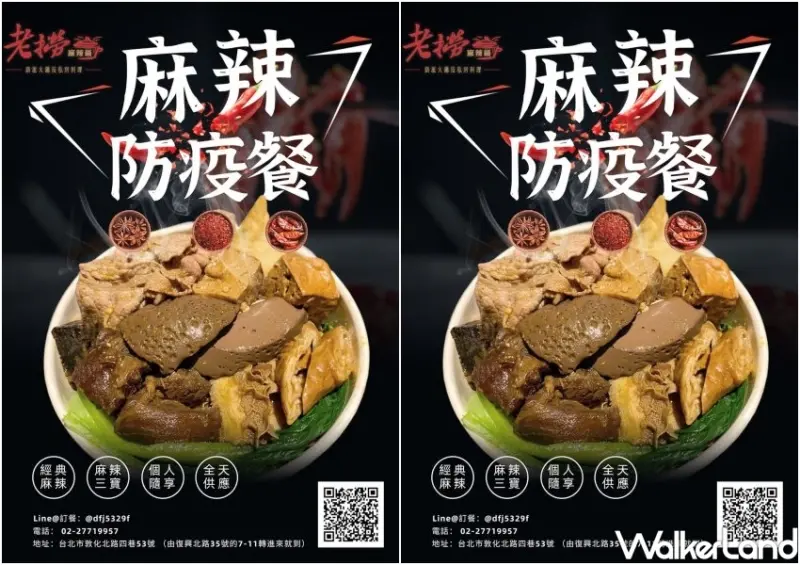 位於南京復興站附近的「老撈麻辣火鍋 新派火鍋及私房料理」,是老饕都知道的頂級麻辣鍋夯店,此次推出7款個人外帶鍋,以招牌麻辣鍋為基底加上鴨血、豆腐火鍋料和蔬菜最便宜只要150元就能外帶。此外,若是點購各式鍋類單點外帶自取可享有七折優惠,外送滿額免費之外再加碼打九折優惠,超佛心的價錢希望盡一絲綿薄之力齊心抗疫。