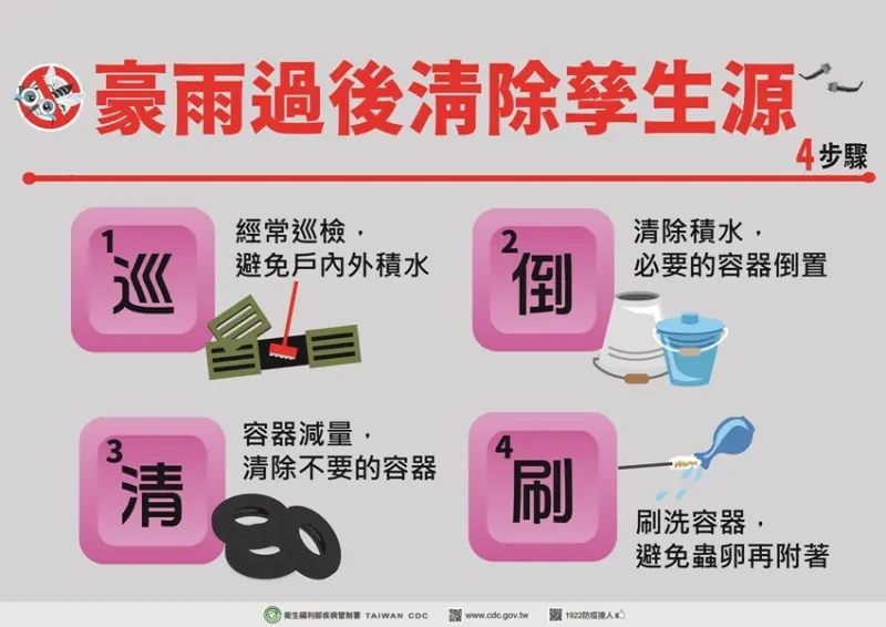 並且,指揮官陳時中呼籲:疫情期間,仍然要注意這幾天下大雨,雨漸漸停後,不要忘記登革熱威脅,豪雨過後清除孳生源,環境基本動作要做,各地政府都要做好巡倒清刷,避免另外疫情擴大。