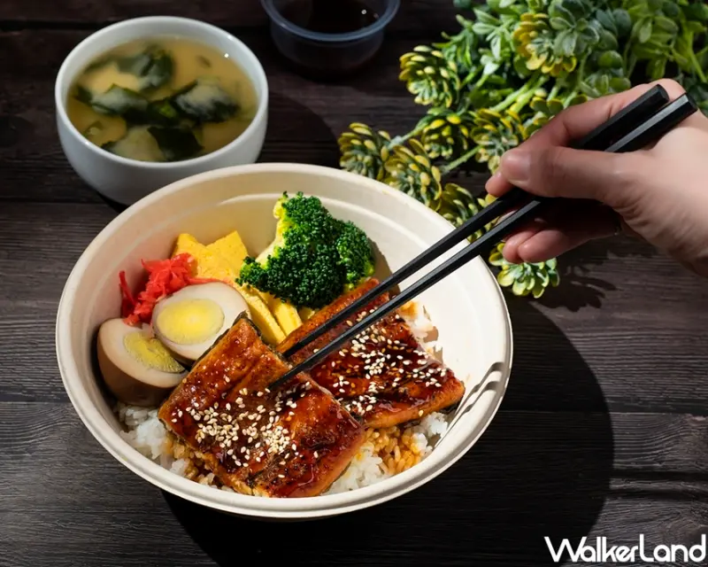 「燒烤台灣鰻魚丼飯佐味噌湯」主廚特別選用台灣優質鰻魚先細心處理魚刺,新鮮鰻魚沾上主廚特調醬汁後,炭烤至鰻魚表面滋滋作響,厚實肥美的鰻魚帶點炭烤香氣,鋪在彈牙美味的白米飯上,每一口米飯搭配著烤鰻魚的鮮甜醬汁一同入口,入口銷魂,幸福感難以言喻。