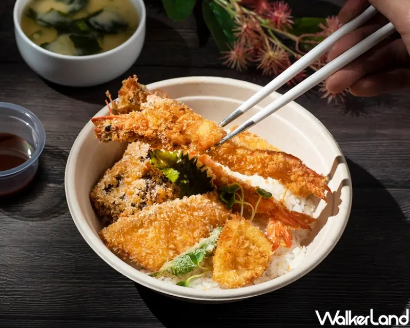 「酥炸海鮮天丼佐味噌湯」選用各地鮮美海味,包含台灣草蝦、挪威鮭魚、日本扇貝及當令蔬菜,作為海鮮丼飯的食材。為了保留酥脆口感,比照高級日本料理店製作天婦羅的料理方式,秘訣在於先使用乾麵粉吸收食材外在的水分,然後再均勻裹上麵糊衣,悉心讓麵衣完整包覆食材,下鍋油炸才能呈現完美的金黃色酥脆外衣,盡享道地日式美味。