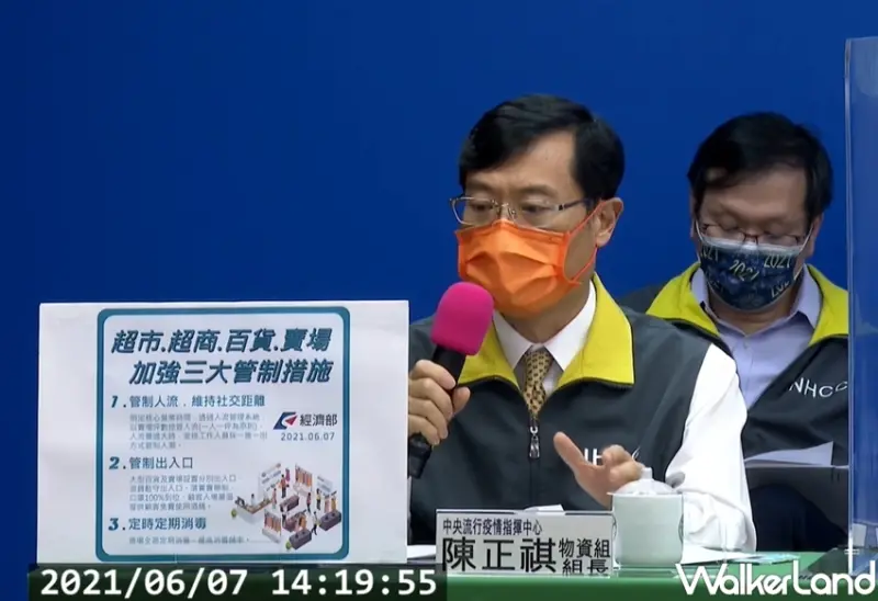 此外,針對超市、超商、百貨、賣場,經濟部加強三大管制措施,中央流行疫情指揮中心物資組組長陳正祺說明: