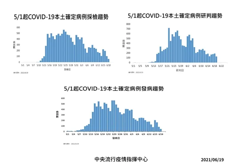 指揮中心指出,近期確診個案解隔離情形,5月11日至6月17日累計公布12,385位確診個案中,已有7,189人解除隔離,解隔離人數達確診人數58%。