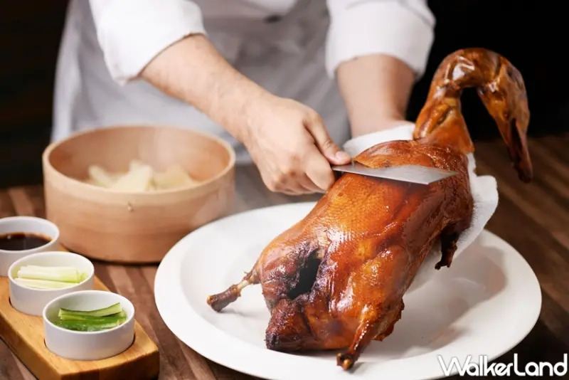 其中,世貿名人坊片皮鴨嚴選宜蘭櫻桃溫體鴨,肉質十分鮮嫩細嫩,主廚淋上醋、麥芽水、獨門秘方,使外皮更加酥脆,鮮香十足;鴨醬則以慢火熬製而成,搭配薄嫩手工的餅皮,唇齒留香。
