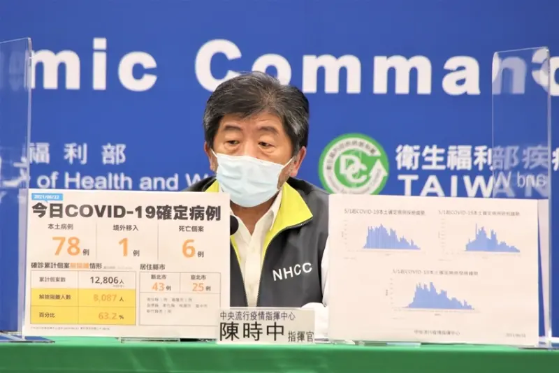 中央流行疫情指揮中心今(22)日公布國內新增78例本土病例,為35例男性、43例女性,年齡介於未滿5歲至90多歲,發病日介於今(2021)年6月14日至6月21日。個案分佈以新北市43例最多,其次為臺北市25例,南投縣3例,基隆市2例,苗栗縣、彰化縣、桃園市、臺中市及新竹縣各1例。其中雙北地區以外縣市10例中,8例為已知感染源,2例關聯不明;相關疫情調查持續進行中。![]()