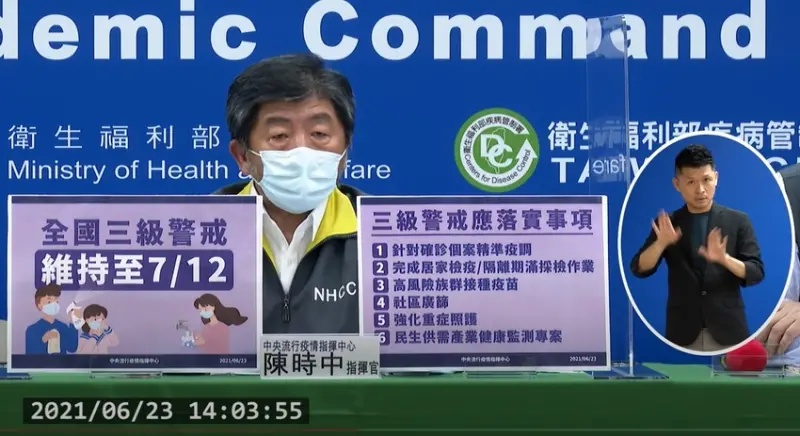 同時,指揮官陳時中表示:目前防疫整體趨勢,是持續往比較好的地方走,但還是維持三級警戒到7月12日,趨勢雖有所改善,但仍未達到指揮中心的降級的標準。