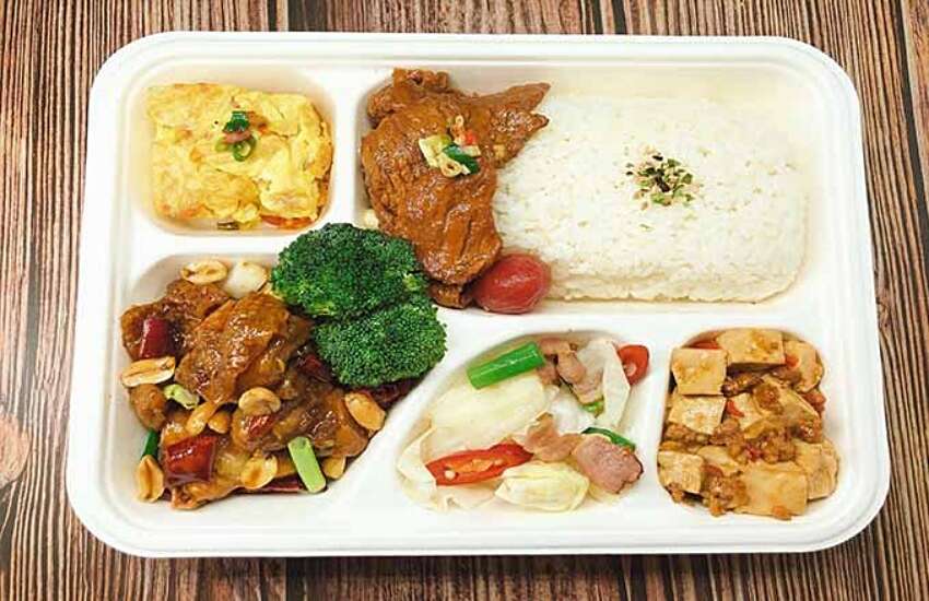 金桂日式餐廳的「壽喜滿福便當」以牛肉壽喜燒為主題,結合牛肉壽喜燒、精緻炸物、多款煮物,豐富濃郁的口感,徹底展現五星級飯店的霸氣!安打西餐廳推出的嫩烤牛排飯,在家也能享受西餐廳牛排多汁鮮嫩,令人欲罷不能!另有適合蔬食者的養心茶樓養心招牌餐盒、享受港台風味的朝桂台港餐廳烤鴨餐盒等,超多種餐盒選擇讓你每天吃都不會膩!龍潭區訂購滿2,000元就可免費外送,五星級美味親自到你家!