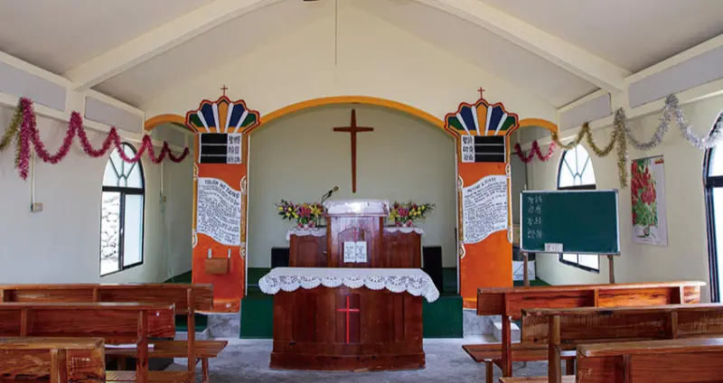 隸屬於基督教長老教會,宜灣基督教堂擁有漂亮的歌德式建築尖塔外觀,純白色的外觀搭配彩繪尖塔與天使雕飾,這唯美造型就是參考耶誕卡片建造,當年因為預算有限,教堂僅有華麗的正面外牆,後方依舊是傳統的鐵皮屋,因此才會有「卡片教堂」之稱。小小的教堂是宜灣部落的精神寄託,莊嚴肅穆的氛圍讓人心情寧靜,兩側的聖歌看板是以羅馬拼音書寫的阿美族語,雖然看不懂卻也讓人覺得很特別。![]()