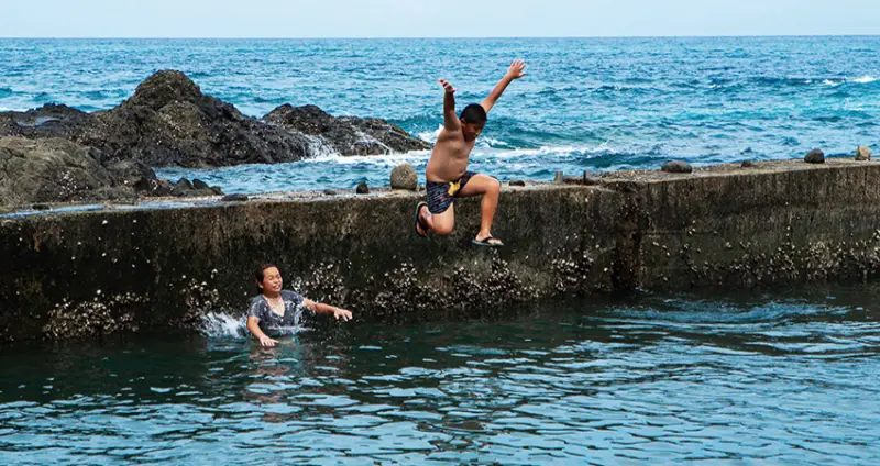 「膽曼」位於長濱鄉寧埔村,是台11線上的海岸阿美族部落,緊鄰烏石鼻風景區,是個靜謐的小漁村。這裡的海岸地質為黑色火山熔岩,隨處可見怪石嶙峋,黝黑色澤充滿神秘感。早期海邊有多座九孔養殖池,廢棄後就成了部落小孩最佳戲水池,也是釣客最喜歡的漁場。退潮時,生態豐富的潮間帶是最佳海洋教室,駐足遠眺,太平洋特有的白雲海景深刻烙印心中,這就是東海岸最迷人的夏日風光。![]()