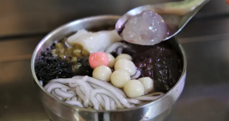 「台南人早餐的冰,嚴格上講應該稱為『溫冰』,因為冰少、料多,吃起來不會太胃寒傷身。」這家冰攤從黃婉玲少女時期一路經歷過帶著孩子上門品嚐至今,最為可喜的是口味從不變,店裡粉粿、紅豆、湯圓、愛玉等多達12種配料, 全都是老闆娘親自做的,且價格永遠親民,一碗40元的冰,就是一個大碗公,老闆娘給料常常一整碗滿得都要溢出來,完全不手軟。這碗冰,是許多老台南人逛菜市場的早晨共同回憶。