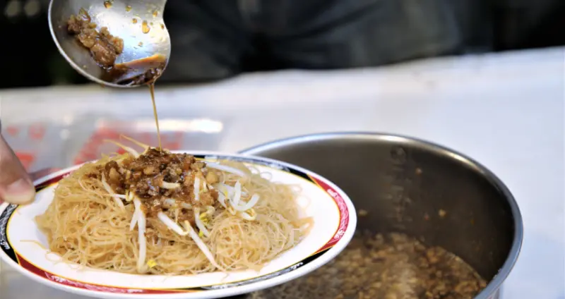 而米粉炒也不簡單!很多人以為米粉炒跟炒米粉一樣,其實不同!黃婉玲解釋:「米粉炒是不加料,米粉入鍋炒再淋上肉末、油蔥酥、高湯等醬汁,最後用4支筷子將米粉跟柴魚醬油汁拌入味。」看似簡單但要做到不能太乾也不能太濕,實在是分分秒秒巧妙。