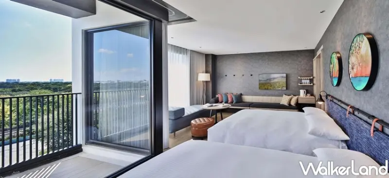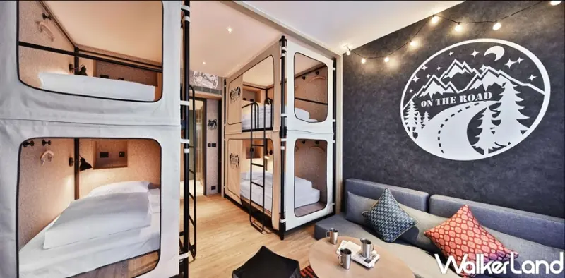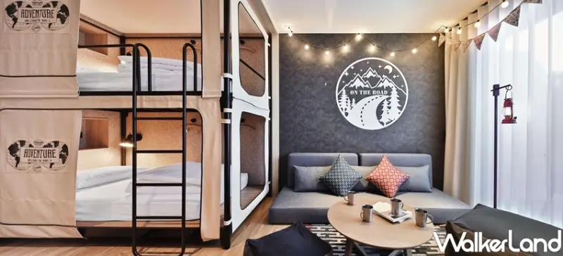 全館僅有三間的「十鼓套房」擁有14.5坪的寬敞空間,除了臥室與客廳,更有飯店中少見1:1的景觀露臺得以延伸活動範圍,讓旅人在房內即可坐享開闊美景。另間相當吸睛的「鼓趣客房」也預計將會成為旅人們的打卡熱點,活潑溫馨的上下舖四床設計,讓成群好友能保有各自隱私的睡眠空間,入住飯店也能體驗背包客的樂趣,打造高CP值的旅宿亮點。