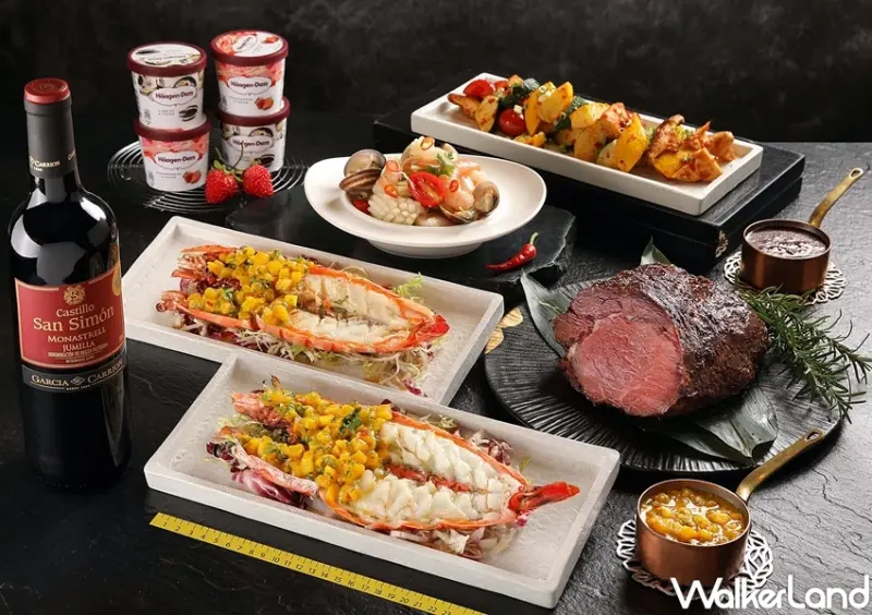 全新的「2人份海陸巨無霸」外帶餐內含焱烤巨無霸手臂蝦二隻佐芒果莎莎醬、25盎司(700g)拉美沙朗牛排佐大馬黑胡椒醬,以及二人份的海鮮青木瓜沙拉、檳城碳烤時蔬,外加精選西班牙紅酒一瓶和哈根達斯迷你杯冰淇淋四杯。