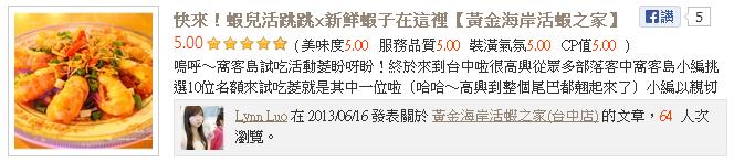 『黃金海岸活蝦之家』試吃招募大成功!!