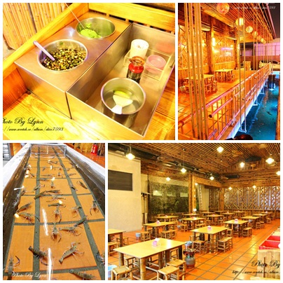 餐廳內部跟餐廳外觀都一樣是以孟宗竹為主的裝潢,就連天花板跟用餐的桌椅亦是喔。養殖區水質相當純淨,每一隻蝦子看起來都非常健康肥美的模樣喔 ~