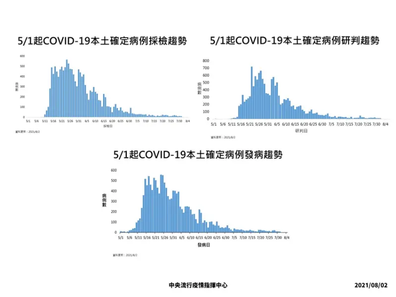 針對許多媒體詢問:8月9日之後是否會再降級?指揮官陳時中表示:上周二(7/27)起防疫警戒降到2級,確診者降到每日約15人左右,未知感染源病例數有連續20天沒有超過4例,平均也低於5例未知感染源,但上周無法看出有明確變化,也無法代表降級之後的疫情變化,要等下周已後才看得出來,因此現階段不會大幅改變,原則上不會再加嚴,目前看來,8月9日維持二級警戒是必然的。同時,台北市長柯文哲、新北市長侯友宜,分別表示將在8/3起有條件下開放內用。