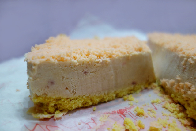 口感上融心乳酪更勝一籌,在融心的底部有較為酥鬆的派皮作基底,