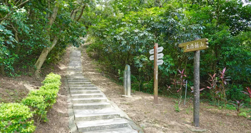 南崁附近的五酒桶山步道,全程約4公里,內有多條路線串聯,主線高低落差平緩、規劃完善,林蔭茂密、綠意盎然;從南天宮旁起點進入,先拾170階石梯而上,不久即抵南崁山瞭望台,可將台灣海峽、國際機場盡收眼底。續行沿途不時可見由酒甕堆疊的造景,佇立著觀音像的休憩平台旁,有片隱藏在山林中的寬廣大草坪,是小朋友嬉戲放風的好去處。山區生態豐富,四季植物景觀多變,全程海拔最高的山鼻山,觀景平台視野遼闊,尤其秋日芒海,是不可錯過的當季限定浪漫美景。![]()
