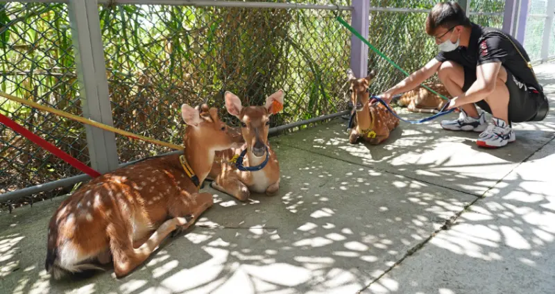有「北台灣小奈良」之稱的山腳鹿場,原以採集鹿茸為主業,1996年鹿場主人鄭文彬接下家中水鹿養殖事業,於2017年轉型為觀光農場,開放民眾參觀並傳遞鹿的生態知識,目前已飼養了近170頭的水鹿及梅花鹿。園區重視採光通風與環境清潔,沒有一般牧場的異味;而鹿場主人從小鹿時便讓牠們多與人們熟悉親近,所以這兒的鹿都不怕生,來到這可餵鹿吃草、餵小小鹿喝奶、抱抱小鹿,甚至和小鹿趣味賽跑等,大人小孩都能玩得不亦樂乎。![]()
