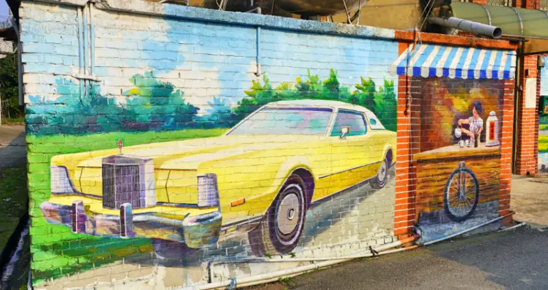 當年藝術造鄉運動,推動坑口里居民紛紛投入彩繪自家社區牆面,創作出許多懷舊風、寫實風、童趣風等不同風格的大型壁畫,集結而成繽紛的彩繪村落。彩繪範圍以蘆竹百年歷史的誠聖宮為中心,延伸至彩繪二巷區、永純化工區,以及海山路沿線,約有千坪面積;順著村里小路入內,稻田、農宅錯落,隨意都有風景,有如走入戶外美術館,一轉角、一巷弄,處處是驚喜。![]()