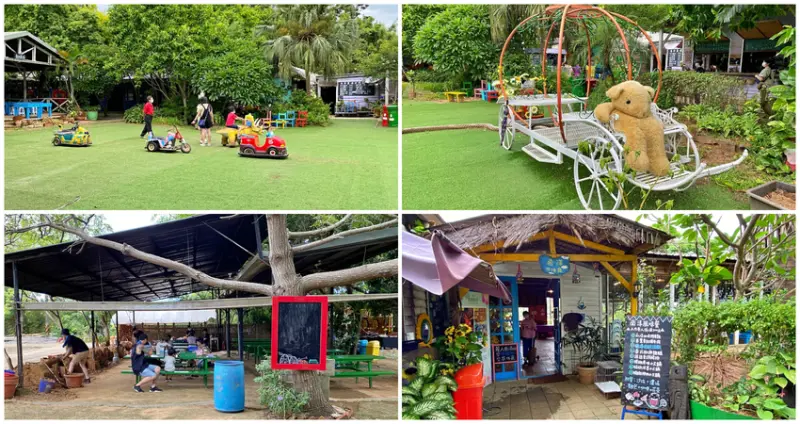 園區裡設有烤肉區、土窯區,全家出遊烤肉非常方便;也有南洋風味餐廳、咖啡店,想要一邊玩一邊喝飲料吃點心、或是一起看風景好好吃頓飯,這裡都能滿足你!