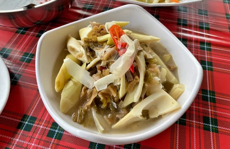 ▲客家燜筍柔軟而入味,咀嚼後筍子清香在口中化開