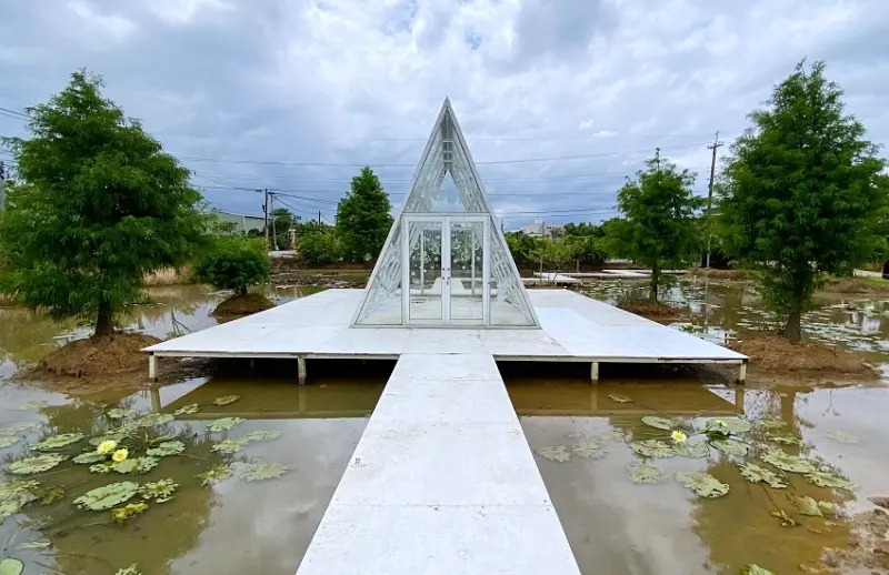 最後,可以安排來到青林農場,除了有網紅愛打卡的水上白色玻璃屋景點外,可以從玻璃屋旁的小徑進入農場,農場中央是廣闊的草皮,草皮上有許多提供給孩童遊玩的設施,附近則有許多座位區,玩累了可以在旁邊乘涼休息。![]()