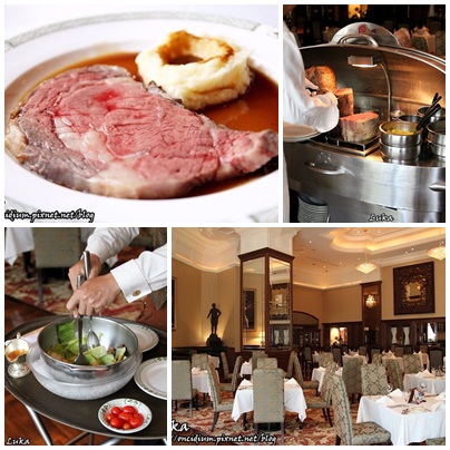 百萬餐車的桌邊服務、慢火烘烤的多汁原味牛肋排。。