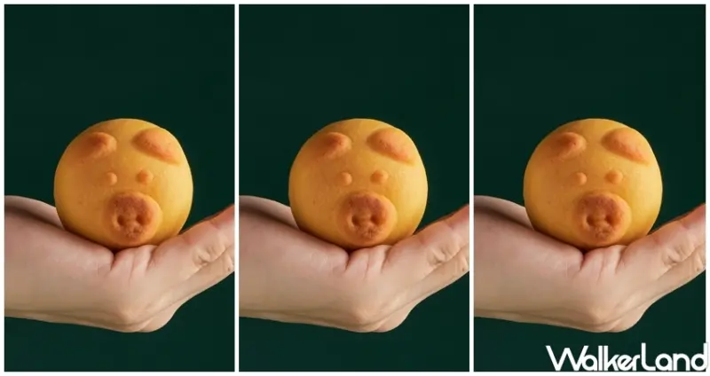 黃金豬仔禮餅的豬仔造型五官立體又渾圓,萌呆表情十分逗趣,烤得金黃的外皮象徵光亮圓月、代表富貴晶瑩,顆顆都是滿溢心意。
