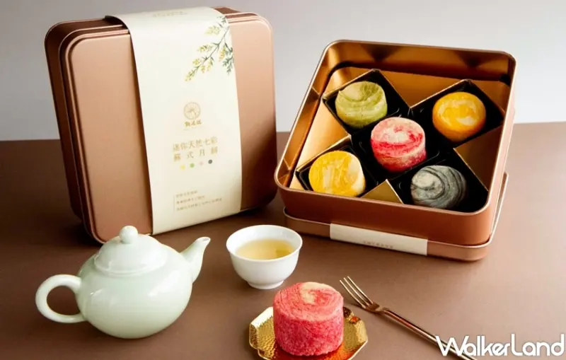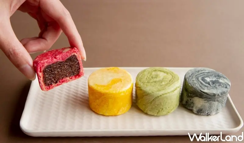 天然七彩蘇式月餅,今年更新增符合現代人需求的迷你天然七彩蘇式月餅,每盒有四種口味,共5顆(奶皇鹹蛋口味2顆、綠豆沙口味1顆、草莓口味1顆、棗泥口味1顆),小巧玲瓏,吃起來無負擔,更可以一次吃上好幾個口味。同樣是由專業師傅手工製作,作工更加細緻,產量有限。