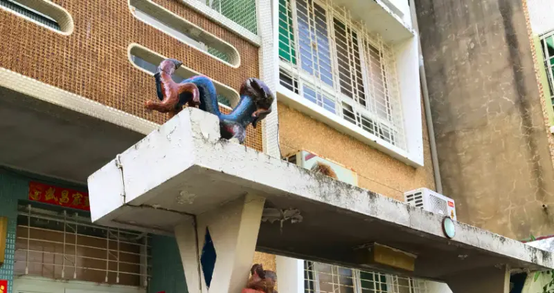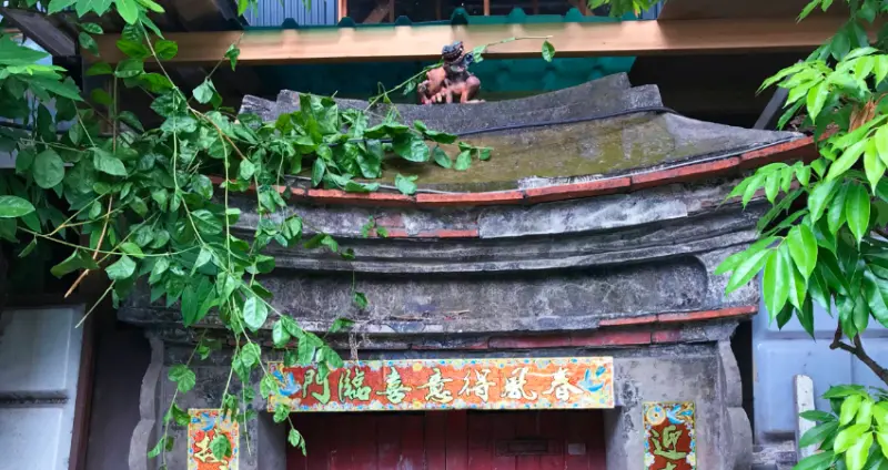 尋找風獅爺的過程,充滿了會心一笑,我遇見了好多一直在抬頭的旅人,零零星星的四處張望,偶爾停下腳步互相告知那尊風獅爺藏在哪裡;也跟隨校外教學老師帶著一大群學生參加導覽,我和學生一起盯著牆邊那尊風獅爺,揣摩著他不知道是哪一種情緒;還有一次站在某處看了半天,都找不到風獅爺,民宅阿嬤看不下去,走過來指引我,這才看到屋簷彼端那尊小小的風獅爺。![]()
