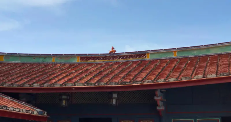 早年台南安平屬漁村聚落,民宅屋頂佇立許多安平傳統避邪物之一的風獅爺,其特徵是面孔朝東北方或東方,張開大大的獅口,屁股有個小洞,神情、造型不一, 每當東北季風一起,獅尾洞口便會響起呼呼聲音,漁民就知道捕烏魚季節到了。![]()